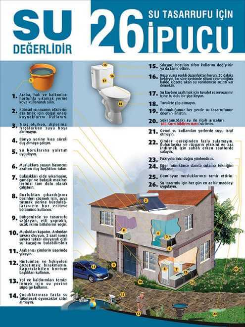💠 Musluklarınız su damlatıyorsa mutlaka tamir ettirin. Damlayan musluklar günde 30-200 litre suyun ziyan olmasına sebep olur.