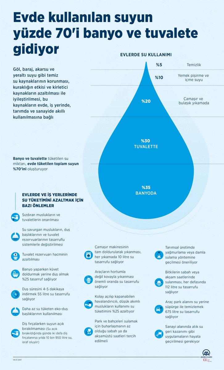 💠Günlük su harcamamızın yüzde 35'i banyoda, %30'u tuvalettedir