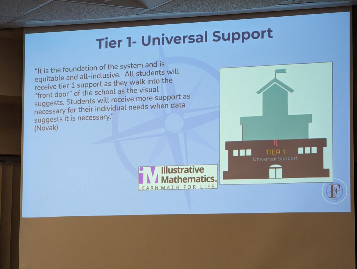 SEL and literacy will be forth coming in future meetings but the concept of the MTSS elevator support is the same and carries across #schcom0228 math specialists meet together once a week, having the tiered support spaces on special Ed