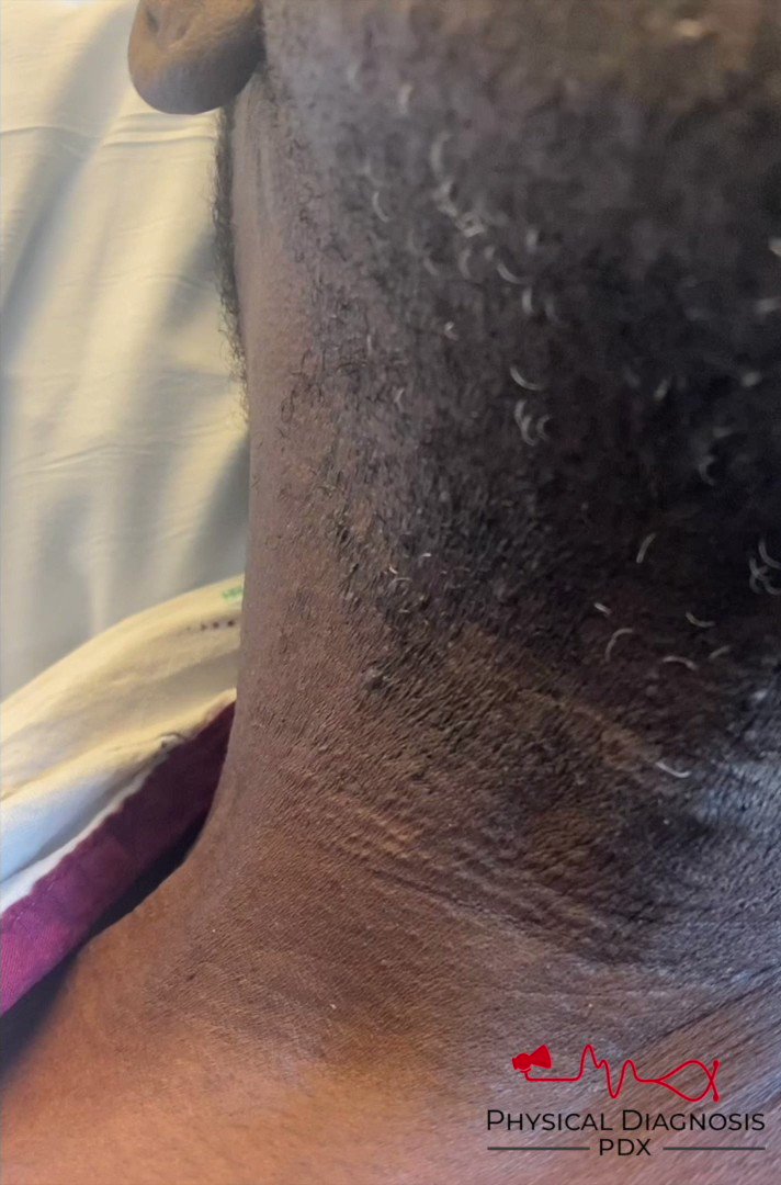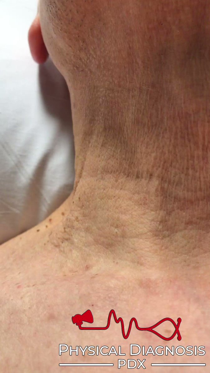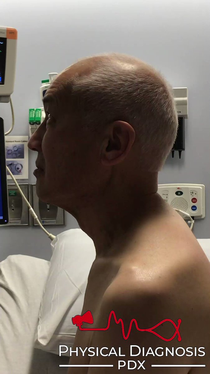 A middle-age man presents with dyspnea on exertion, orthopnea, and weight gain. His BP is 112/40. This should generate a hypothesis. And we begin to test our hypothesis by evaluating for specific physical findings. What clue is present in this video?