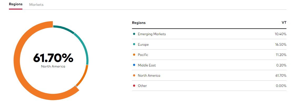 Como hoje as empresas americanas são as que possuem os maiores valores de mercado. O peso dos EUA dentro do VT acaba sendo bem maior, hoje está em torno de 62%. Veja abaixo o peso de outras regiões.