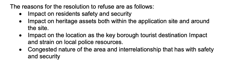 Reasons to reject are not strong enough as not based enough on planning reasons (police) or those the Embassy responsible for 3/