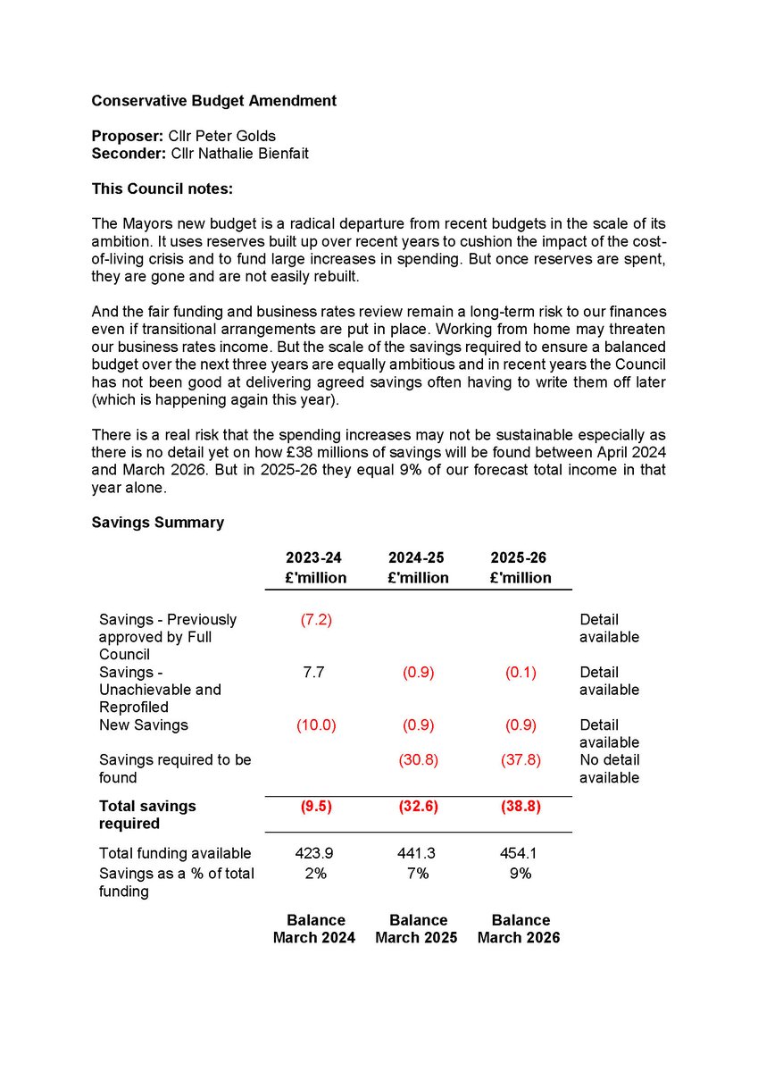 So the Conservative motion focuses on the mechanisms required to find those savings or to generate more income