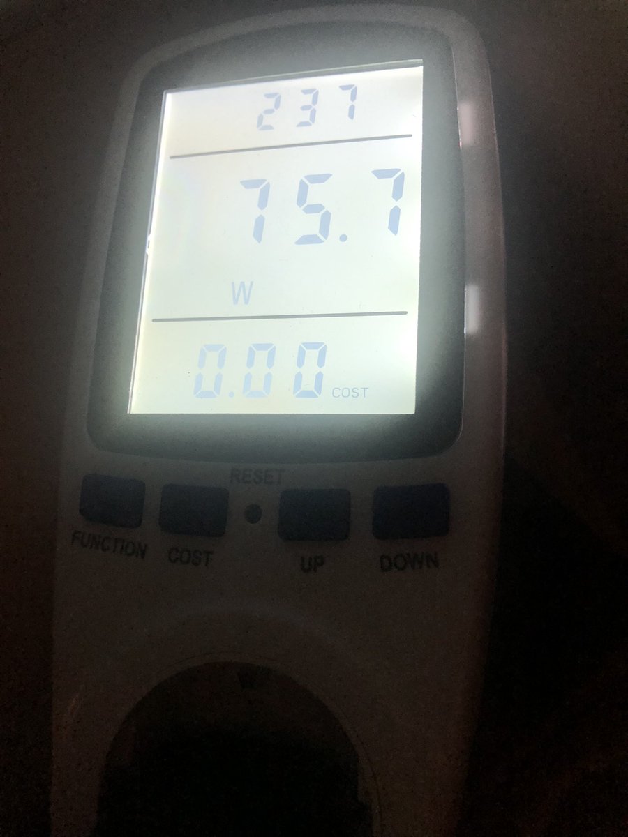 7 gadus vecs Samsung 42 collu televizors. Ar baltu ekrānu tas patērē 75,7W jeb 0,0757kW. Tie būtu 0,03785€ stundā. Ar tumšu ekrānu ir aptuveni divas reizes mazāk.