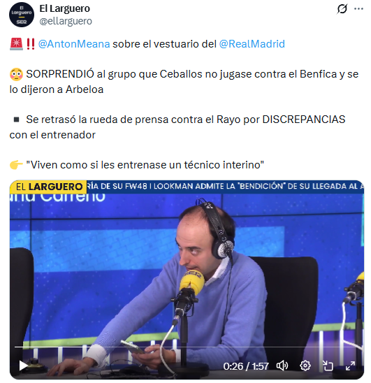 ¿De dónde sale la campaña contra Arbeloa que estamos viendo esta semana? Si os fijáis el mensaje es sincronizado: todos hablan de fuentes del vestuario y de la "cúpula" que no están contentos con el nuevo entrenador del Real Madrid. ¿Y quienes dicen esto? "Casualmente" los