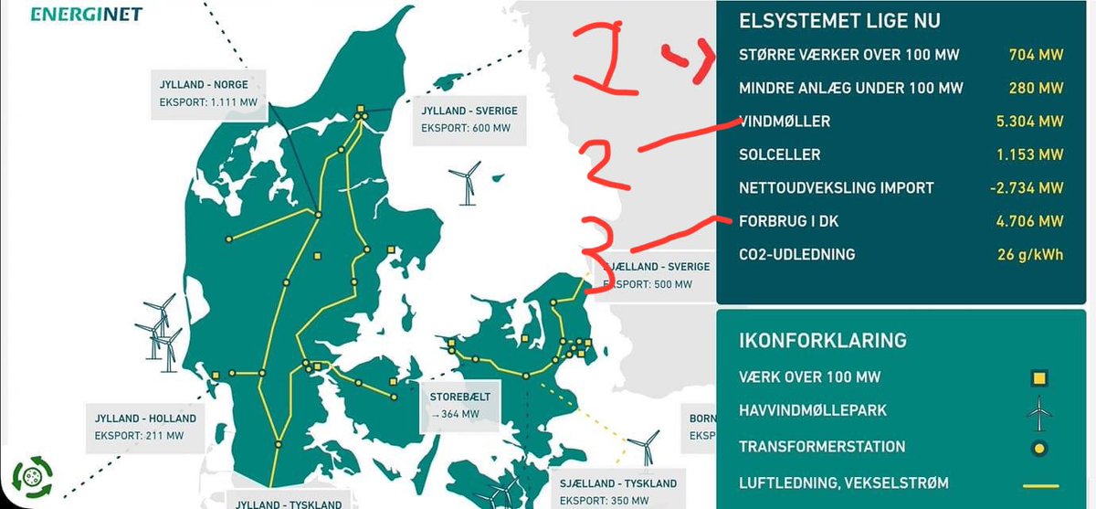The entire countrys electricity consumption(3) is 4,7GW. Wind produces(2) 5,3GW.