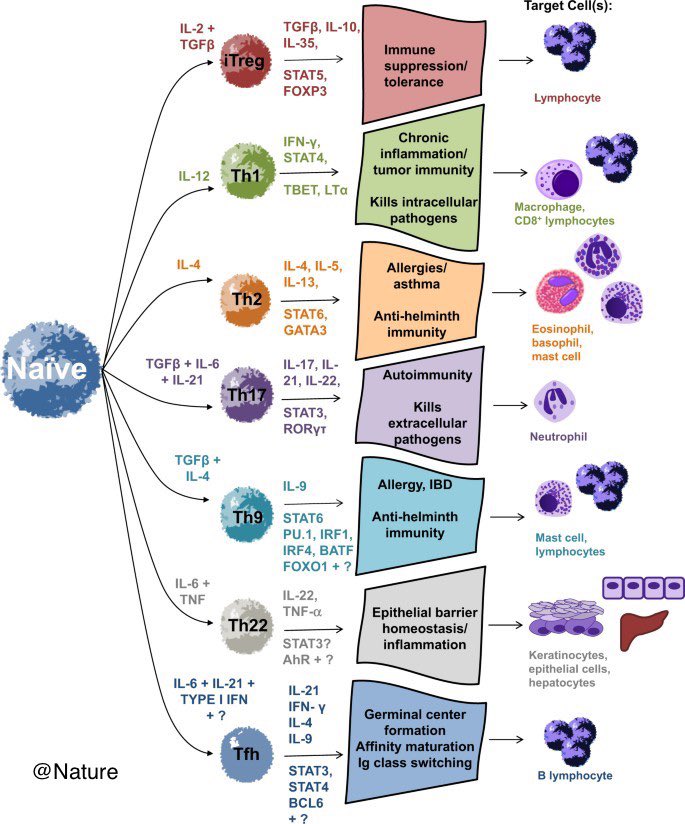 Los que sabemos que sí tienen ALTA “plasticidad” son los linfocitos Th17. Son heterogéneos y ¡ellos pueden adquirir características de Th1, Th2, T helper folicular (Tfh) o T reguladoras! onlinelibrary.wiley.com/doi/full/10.11…