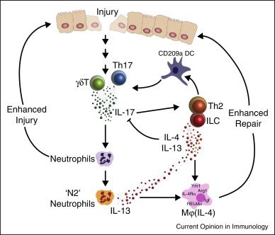 Para su desarrollo requiere TGF-b, IL-6 e IL-23. Es el “domador” de neutrófilos. Esencial en el combate de bacterias extracelulares y hongos. Es el “bad kid on the block” en autoinmunidad, participa en psoriasis en placa, preeclampsia, artritis, IBD, MS…