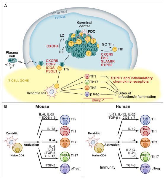 Es el linfocito que está en el folículo del ganglio linfático ayudando al linfocito B a hacer cambio de isotipo y maduración de la afinidad. Importantísima célula para los linfocitos B de memoria