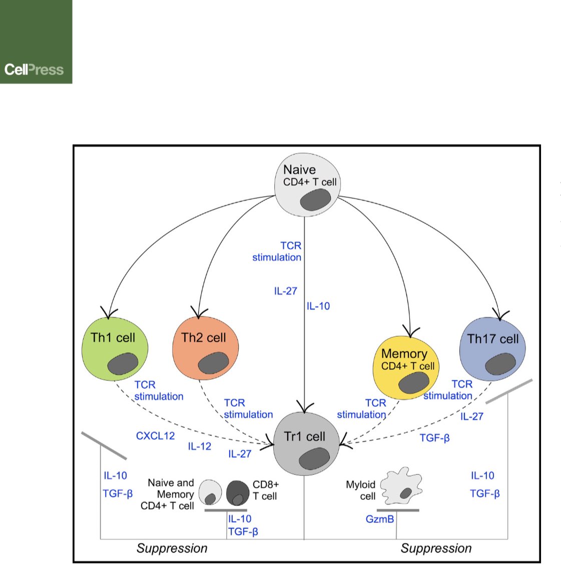 Participan en tolerancia a largo plazo y supresión de células efectoras. Importantes en mucosa intestinal. La microbiota puede regular Tr1 cell.com/immunity/pdf/S…