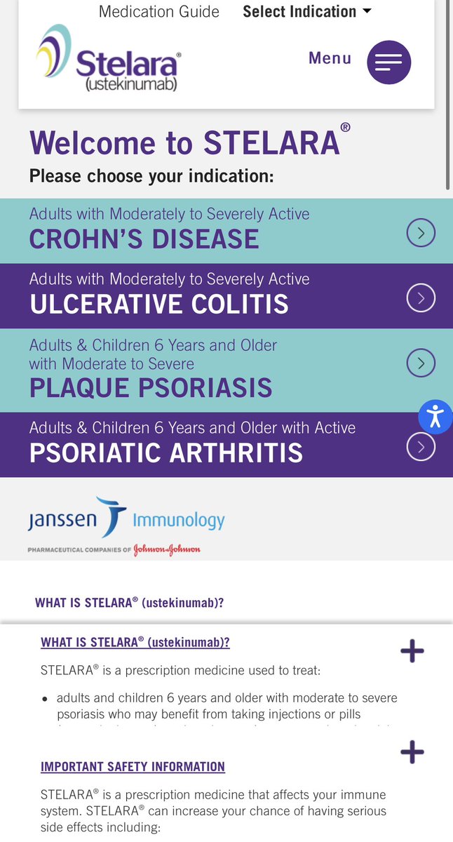 🔹USTEKINUMAB: bloquea subsunidad p40 de IL-12 e IL-23 nos ayuda a bloquear el desarrollo de linfocitos Th1 y Th17. Nos es útil en patologías donde participan estos, como la psoriasis en placa, enfermedad de Crohn, artritis psoriásica, colitis ulcerativa stelarainfo.com
