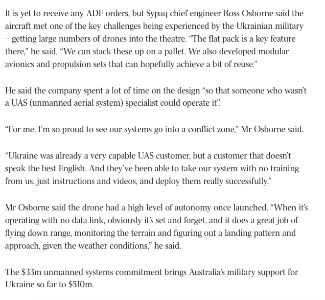 Designed to be totally expendable, some have completed 60 flights and drop bombs, deliver supplies, or conduct recon. theaustralian.com.au/nation/cheap-a…