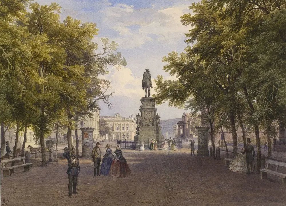 "From that day [February 20th] the French camped in the Linden Avenue, regarding the iron railings as a breastwork. Each street opening into the Linden was commanded on either side by cannon or howitzers , so as to be enfiladed. At night the men slept by their camp fires.