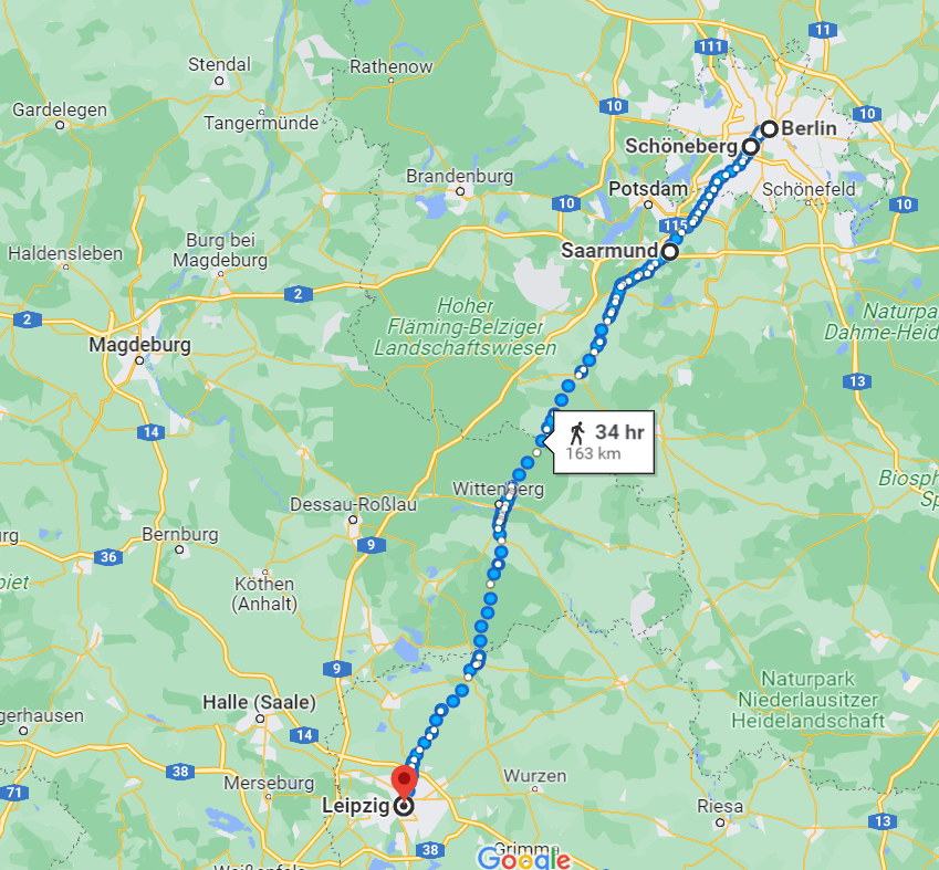 By the end of the day, Eugene arrived in Saarmund, about 35 miles south of Berlin and 80 miles north of Leipzig.