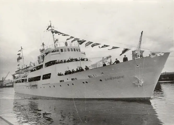 But in 1965 Vanemuine made it's first trip on Tallinnn-Helsinki-Tallinn reopened route. It was all made possible thanks to former Finnish President Urho Kalevi Kekkonen, who was allowed to visit Estonia in 1964. White ship (symbol of hope in Estonian folklore) has arrived.