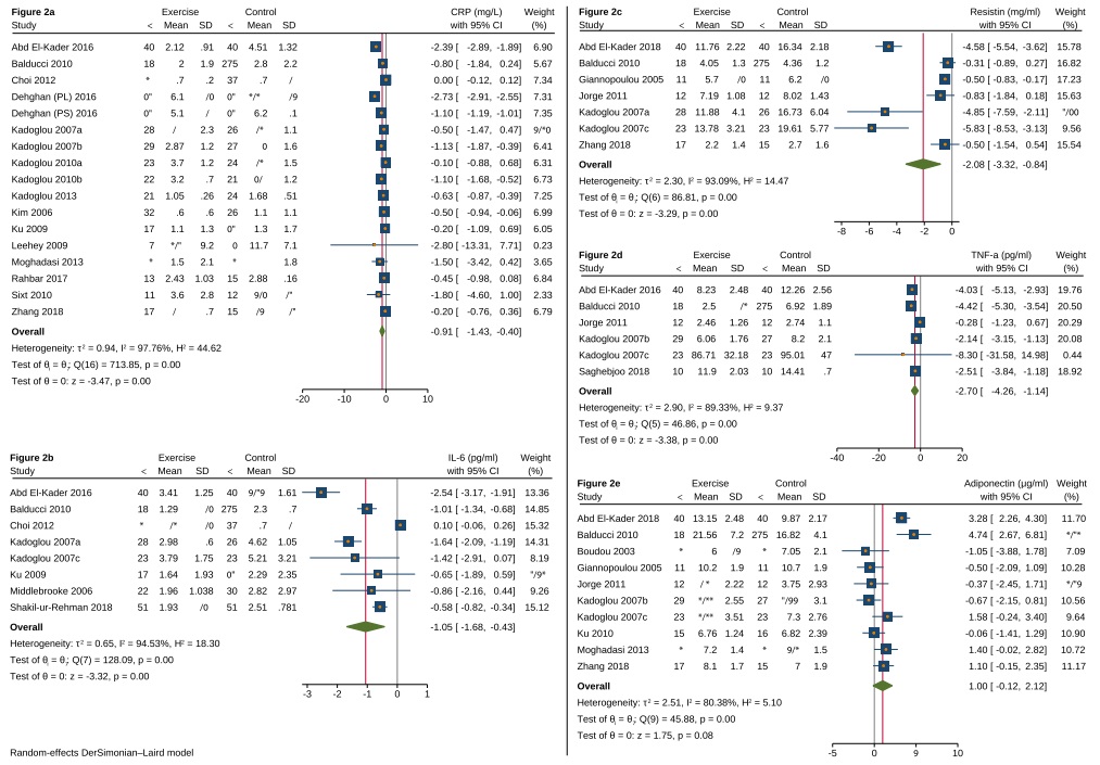 This systematic review and meta-analysis suggests that aerobic exercise is likely to improve non-traditional cardiovascular risk factors, like CRP and adipokines (resistin, IL-6 and TNF-a), even without significant amounts of weight loss in patients with type 2 diabetes.