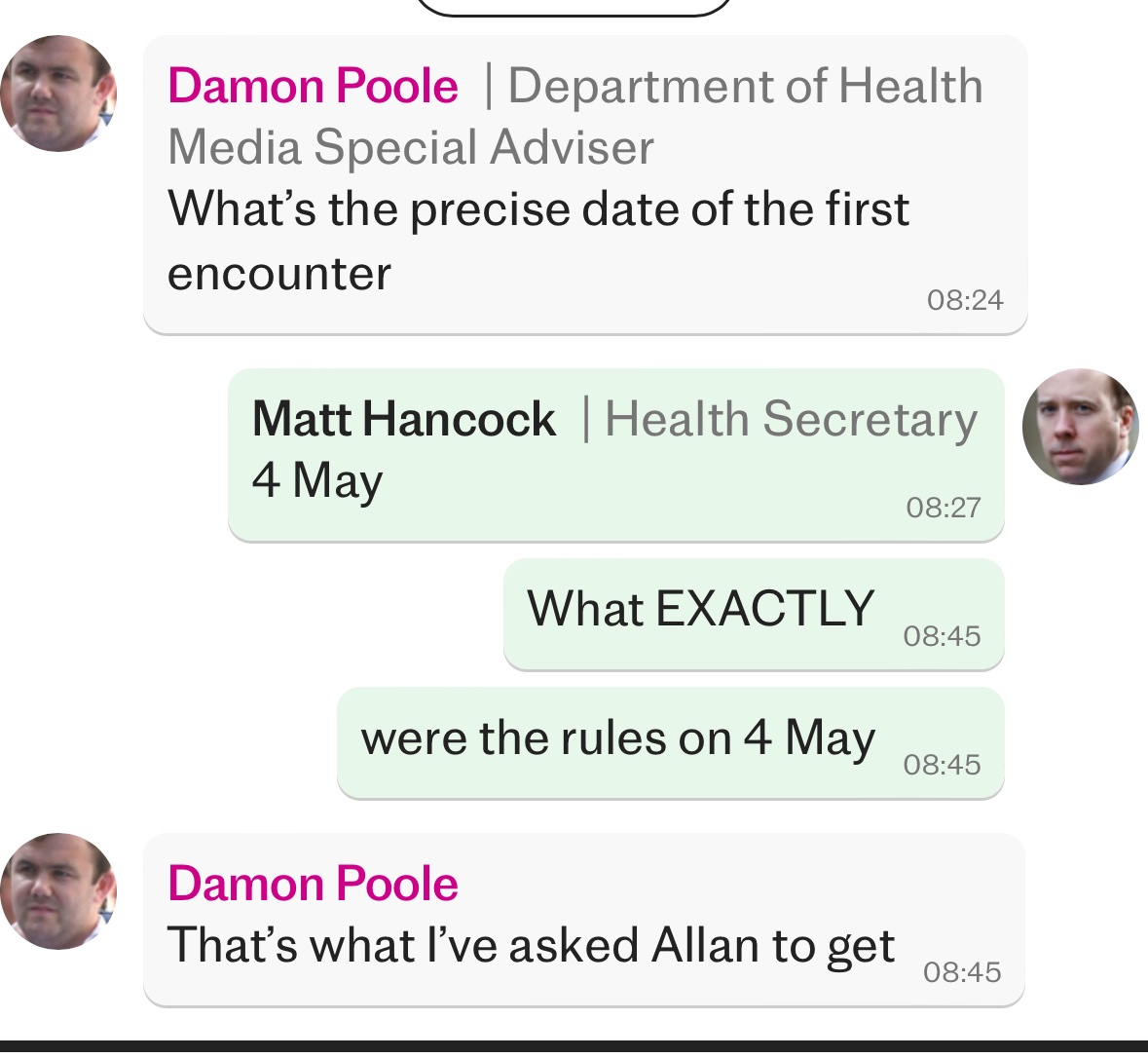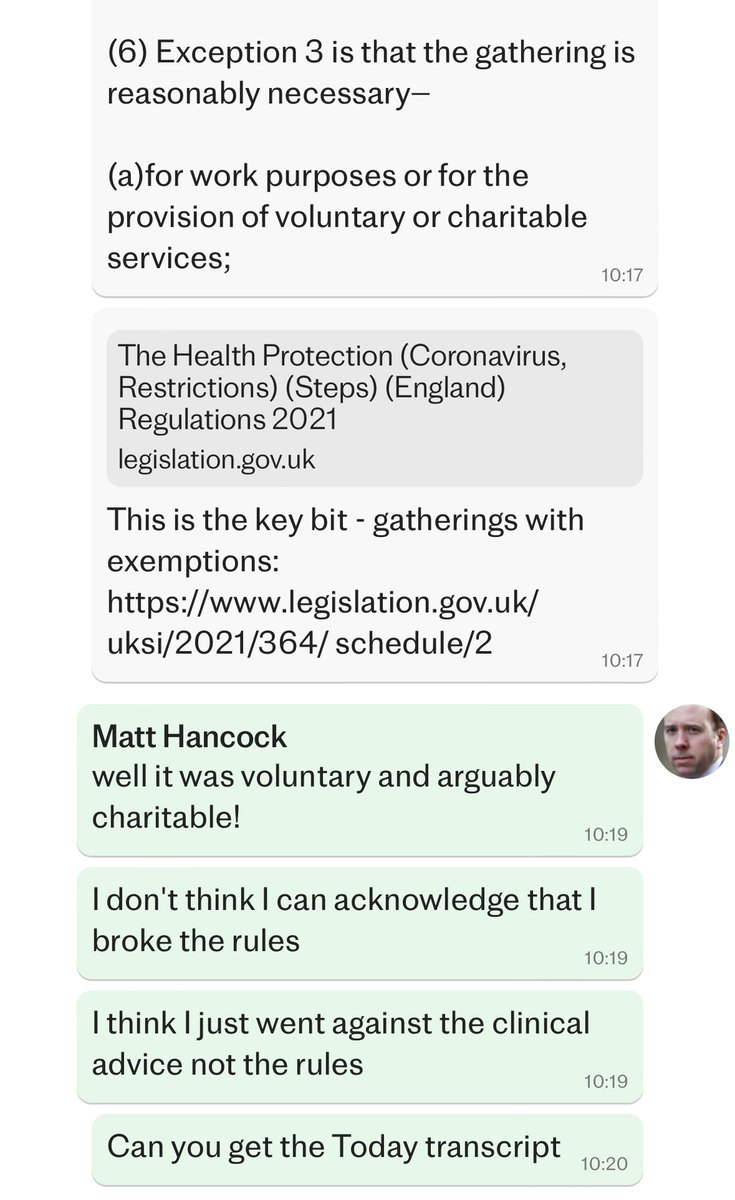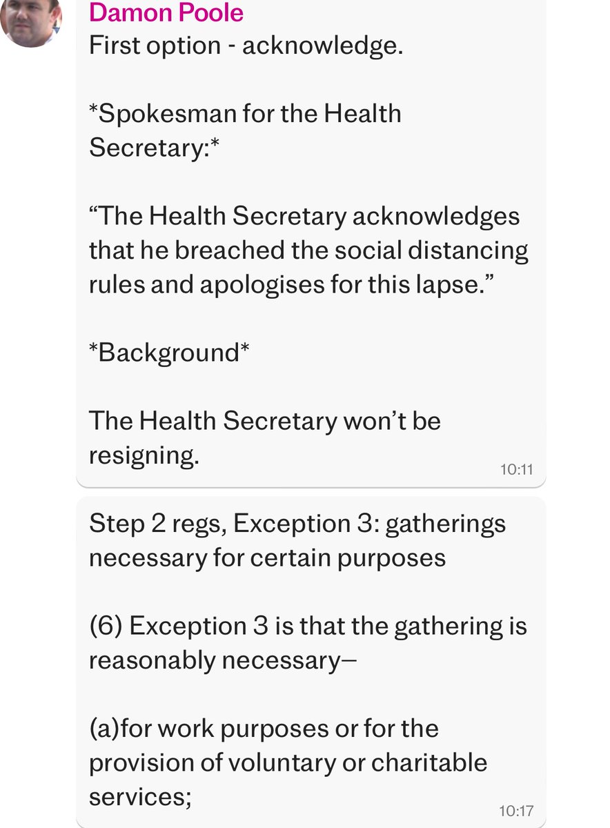 Hancock was well aware of the rules at the time of his affair - reading the WhatsApps from Telegraph it seems like he just convinced himself, or perhaps just tried to convince his aide, he hadn’t broken them. Affair began early May during Step 2