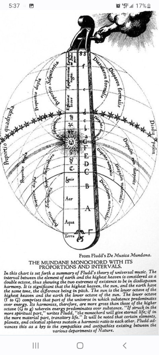 "According to Fludd, 'the monochord is the is internal principle which, from the centre of the whole, brings about the harmony of all like in the cosmos."