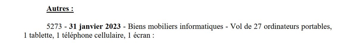 Dans l'inventaire, on a aussi la liste... du matériel volé (et là aussi il y a du beau matos, hélas).