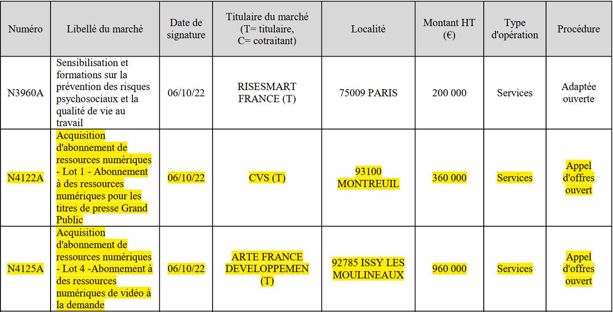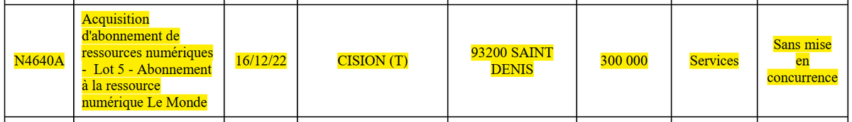 Dans les marchés signés, il y a des abonnements à des médias, mais j'ai du mal à comprendre comment on en arrive à de tels montants. Si quelqu'un peut m'expliquer...