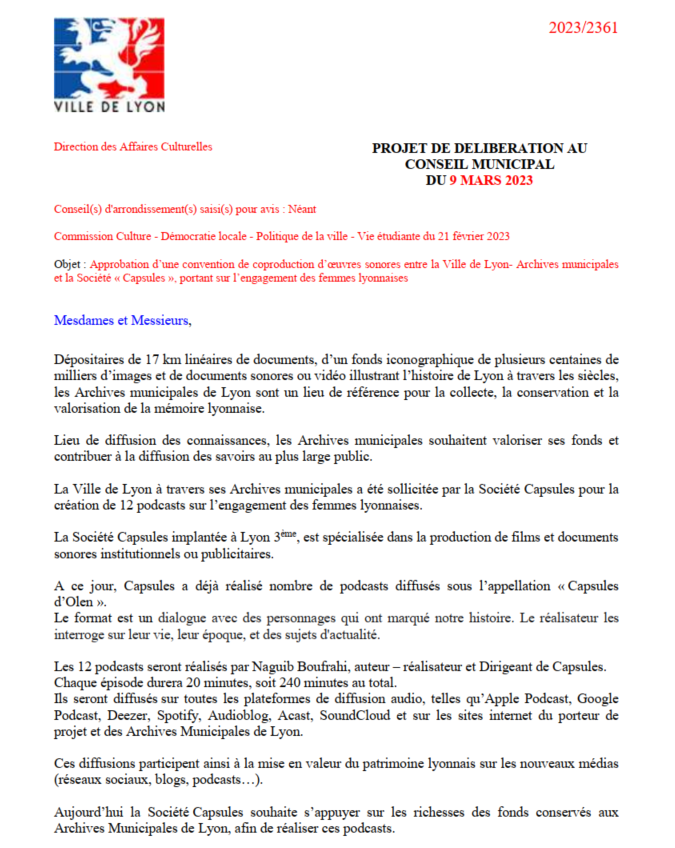 On va bientôt pouvoir écouter sur toutes les plateformes un podcast sur les femmes lyonnaises, grâce à la société Capsules en partenariat avec @ArchivesdeLyon 💪❤️
