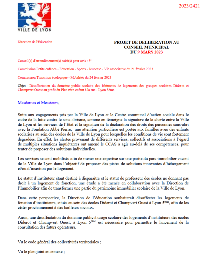Toujours dans le cadre de la petite enfance, des logements d'établissements scolaires initialement dédiés aux profs mais non occupés vont être affectés au dispositif "Plan zéro enfant à la rue".