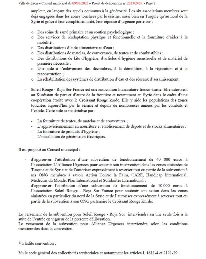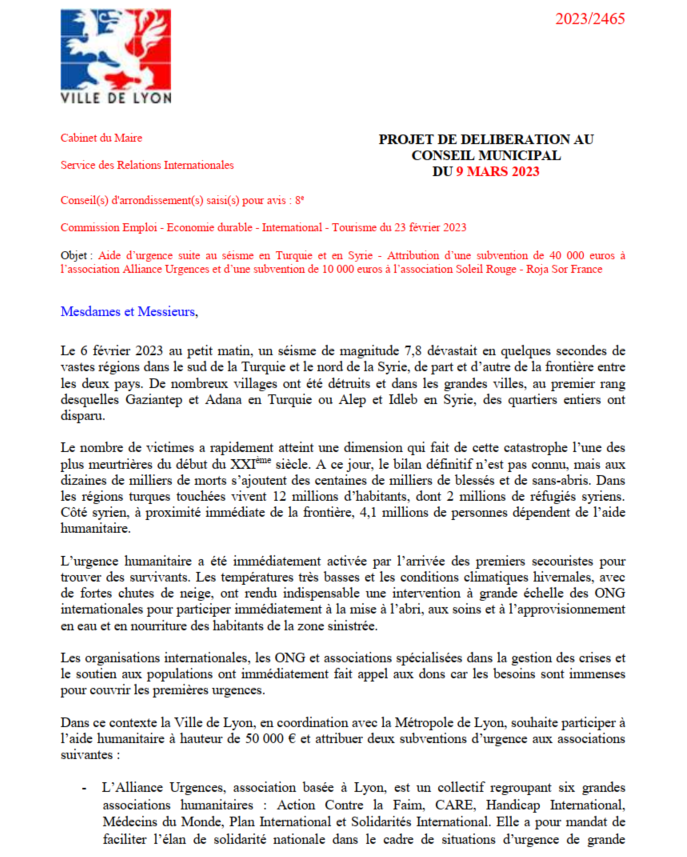 Enfin, après le séisme qui a touché la Turquie et la Syrie, la Ville va débloquer 50 K€ de subventions pour les assos @AUrgences et Soleil Rouge-Roja Sor France qui interviennent sur place.