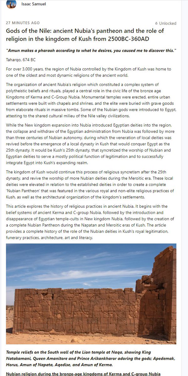 -The relationship between the Nubian god Dedwen, the ram-gods of Kerma and the Egyptian deity Khnum. patreon.com/posts/78797811