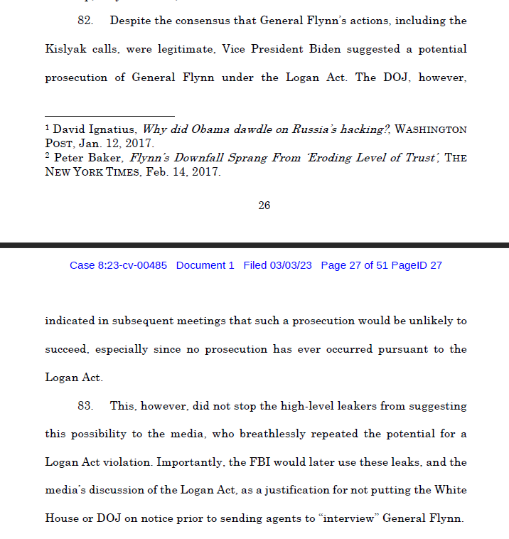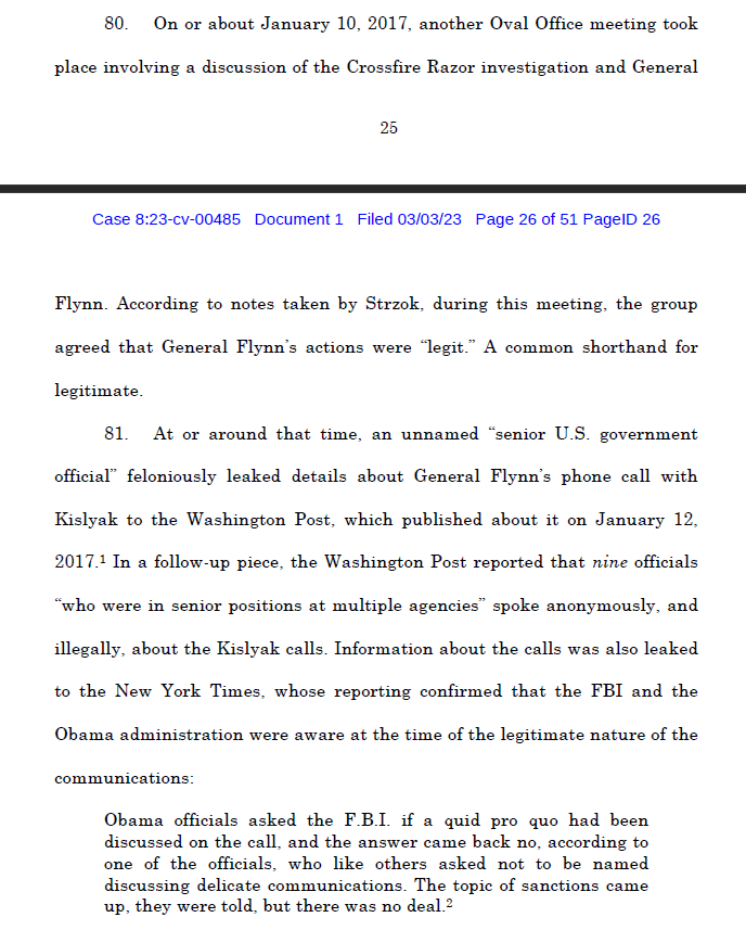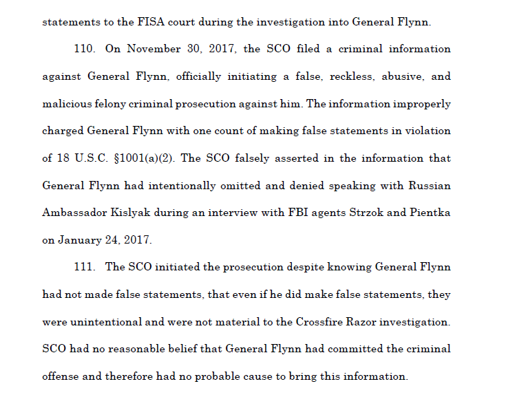 When they filed, Van Grack (US Attorney for SCO) knew it was a lie. They had notes taken at the WH meeting that his conversations with Kislyak were "legitimate."