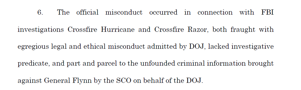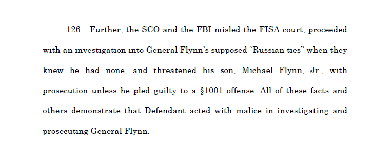The SCO threatened his son, Michael Flynn Jr. with prosecution unless he pled guilty. They withheld the exculpatory information, and I will say it although the filing doesn't: