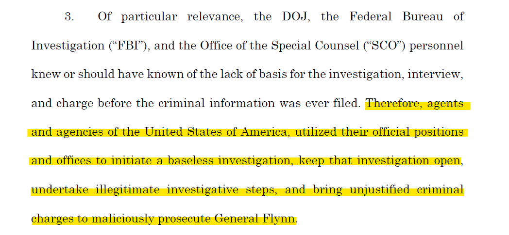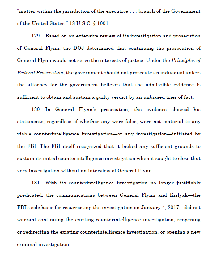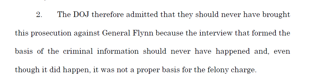 The DOJ admitted it should NEVER have brought the charges against Flynn because the interview that formed the basis for the charges should never have happened. Even though it DID (we will get to the circumstances surrounding this in a moment) there wasn't a proper basis.