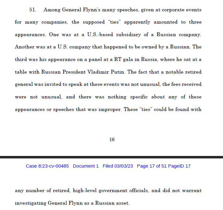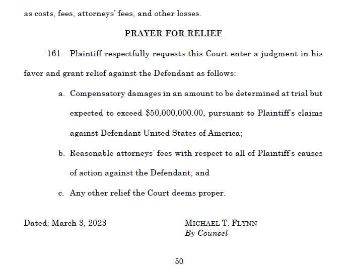 General Flynn is suing the government for a minimum of $50m dollars. He deserves quadruple that amount.