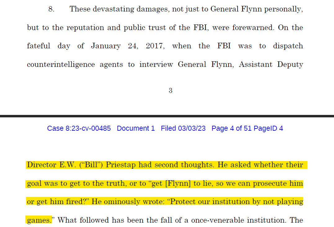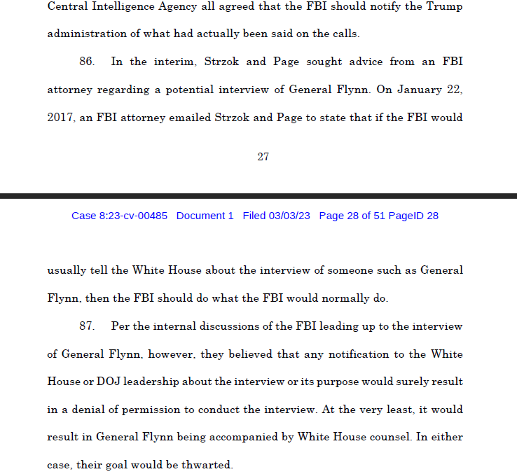 Not included in the suit is how Pientka used a briefing to get a "baseline" for Flynn...