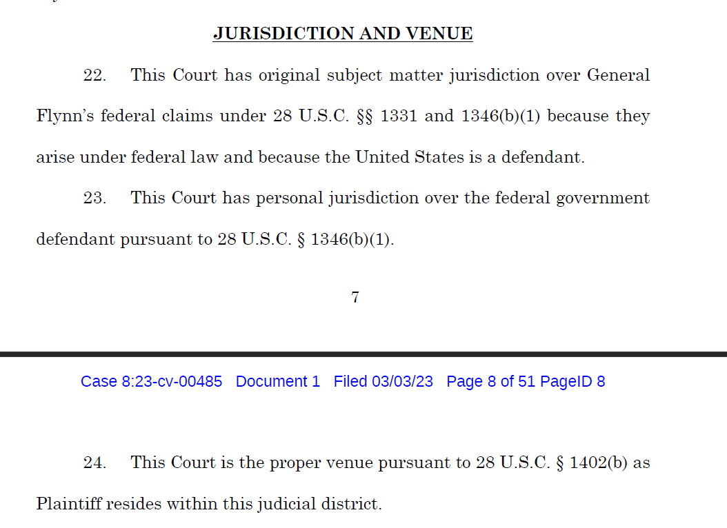 There won't be a successful jurisdiction argument. USG will try, but I don't foresee that succeeding. The Plaintiff lives in this judicial district, and the entire government is being sued.
