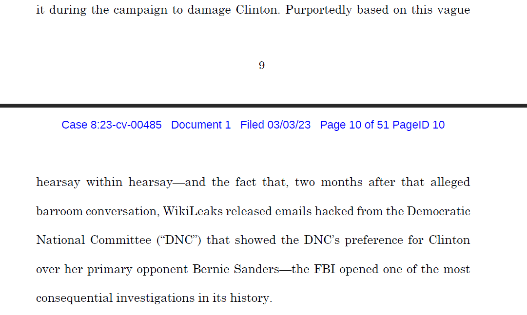 One of the only real qualms I had about this filing is that they say that the emails that Wikileaks released from the DNC were hacked. I beg to differ.