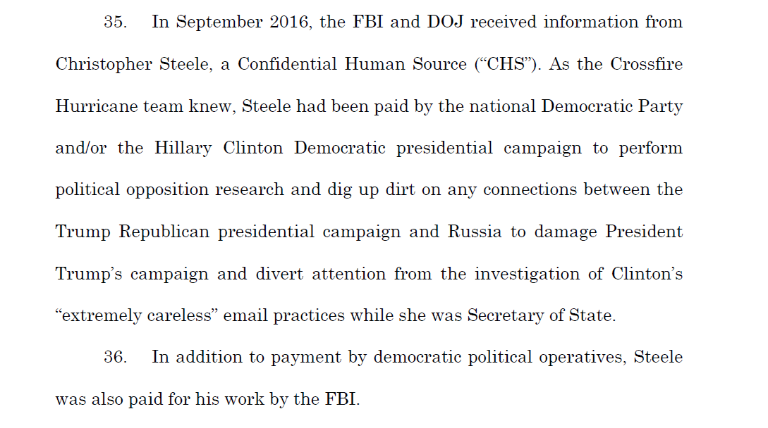 Enter one, Christopher Steele. In September 2016, the FBI and DOJ received info from Steele. When the info came in, the FBI KNEW that he had been paid by the DNC and the Clinton campaign to perform oppo research to get connections between Trump and Russia.