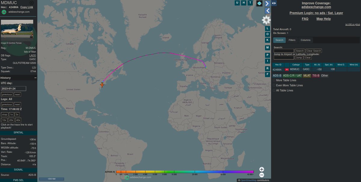 Samolot wystawiony jest na sprzedaż, ale rejestry wskazują, że częstotliwość użytkowania jest bardzo zbliżona do wcześniejszej (sprzed oferty). Niektóre loty potwierdzają się z wylotami Pani Valeriyi Musiny, relacjonowanymi na Instagramie (np. NY/Miami).