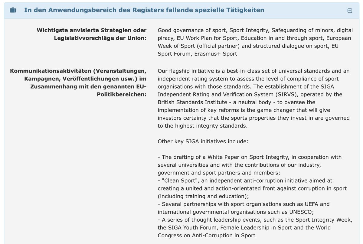 Thread to complement alleged corruption in the EU Parliament #Qatar2022. It is part of the business that two of Qatar's most important sports lobby institutions appear in the EU's transparency register - but without any connection to Qatar: SIGA and ICSS.