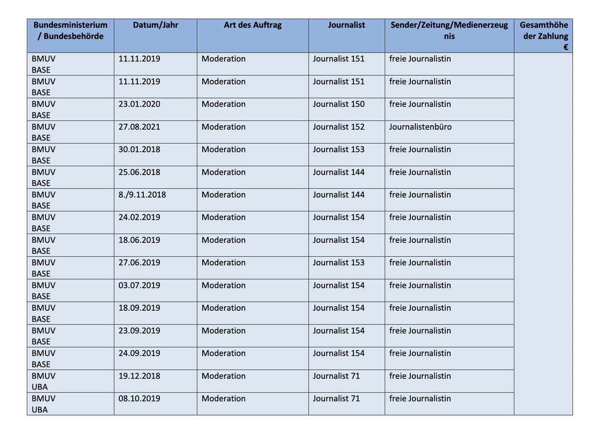 ... da kommen ziemlich große Summen zusammen. Solche Honorare lassen sich im Journalismus eher selten verdienen. Bundesregierung und Ministerien scheinen äußerst spendabel.