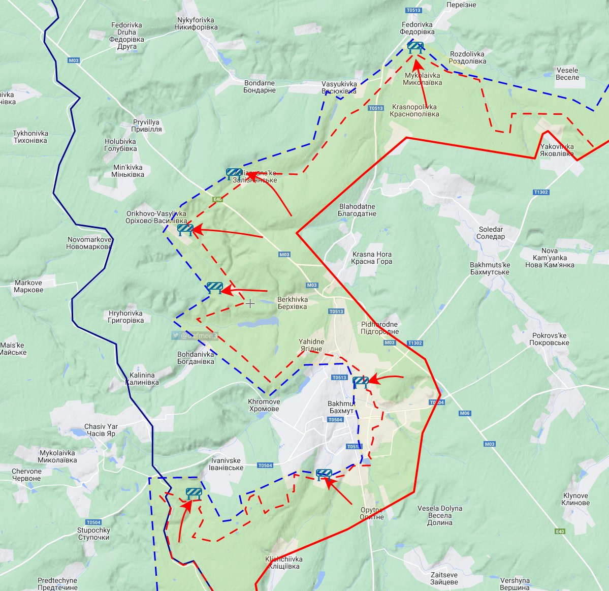 The AFU replused attacks around Kam'yanka, Krasnohorivka, Pervomais'ke, Nevel's'ke, Mar'inka and Pobeda. Like everywhere else, RuAF are not able to attack anything head on but rely on enveloping and forking a retreat. This is what they are tryingin both Bakhmut and Avdiivka.