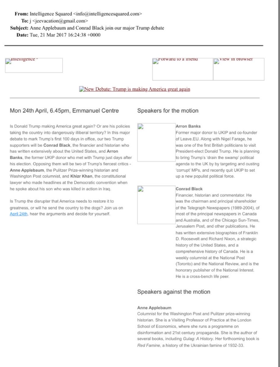 Lots more references to Conrad Black in the latest data drop. Emails back and forth with Ghislaine, Ian & Isabel Maxwell, and Jeffrey re: Conrad Black. He was pro Trump spokes person. He still is. @StuartSyvret @jebrittan2 @andrewlownie @JoannaColes @MichaelWolffNYC