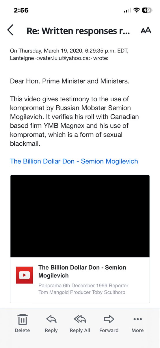 I saw film and contacted my MP, MPP and Prime Ministet Justin Trudeau to notify them of the video and how Simon Mogilevich was linked to YMB Magnex in Canada. I wanted Canada to explain to me what is their stance on using sexual blackmail in Canada. It it illegal?