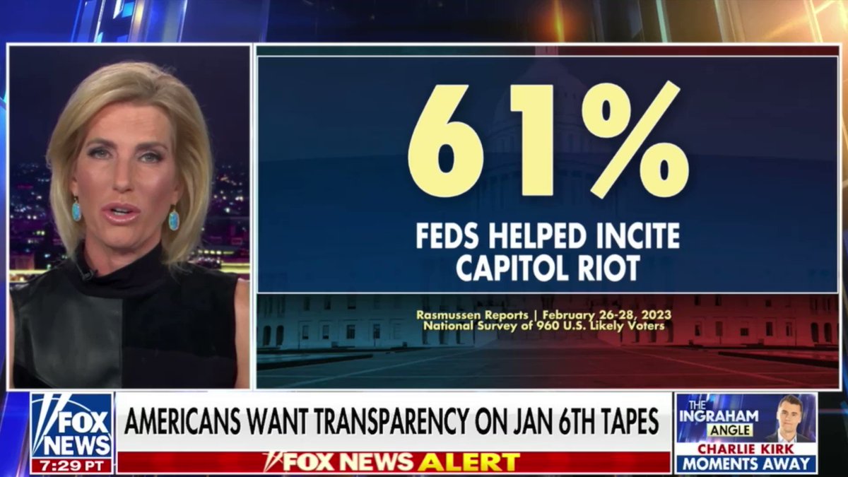 .@julie_kelly2 Joined @IngrahamAngle To Discuss New @Rasmussen_Poll Polling Showing That The Majority Of Americans Not Only Want The Footage From January 6th Released, But Suspect The Federal Government Helped Incite It