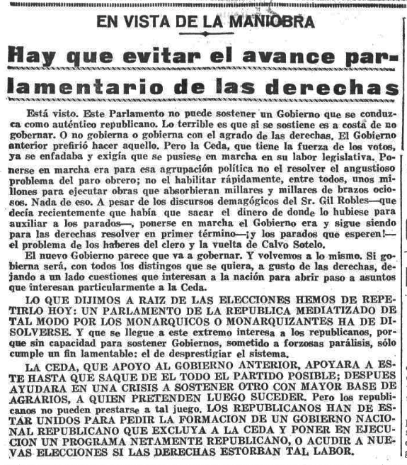 Este era el escenario; ataques a la Gª. Civil, al Gobierno, al Parlamento, a la República e, incluso, a la propia democracia bajo la amenaza de una "insurrección armada".