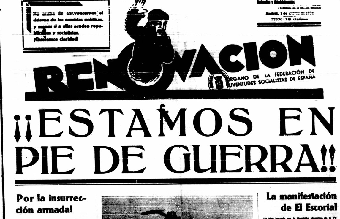 Esta portada, publicada en aquellos agitados días en uno de sus órganos, Renovación (dirigido por Santiago Carrillo), dejaba claros sus propósitos: