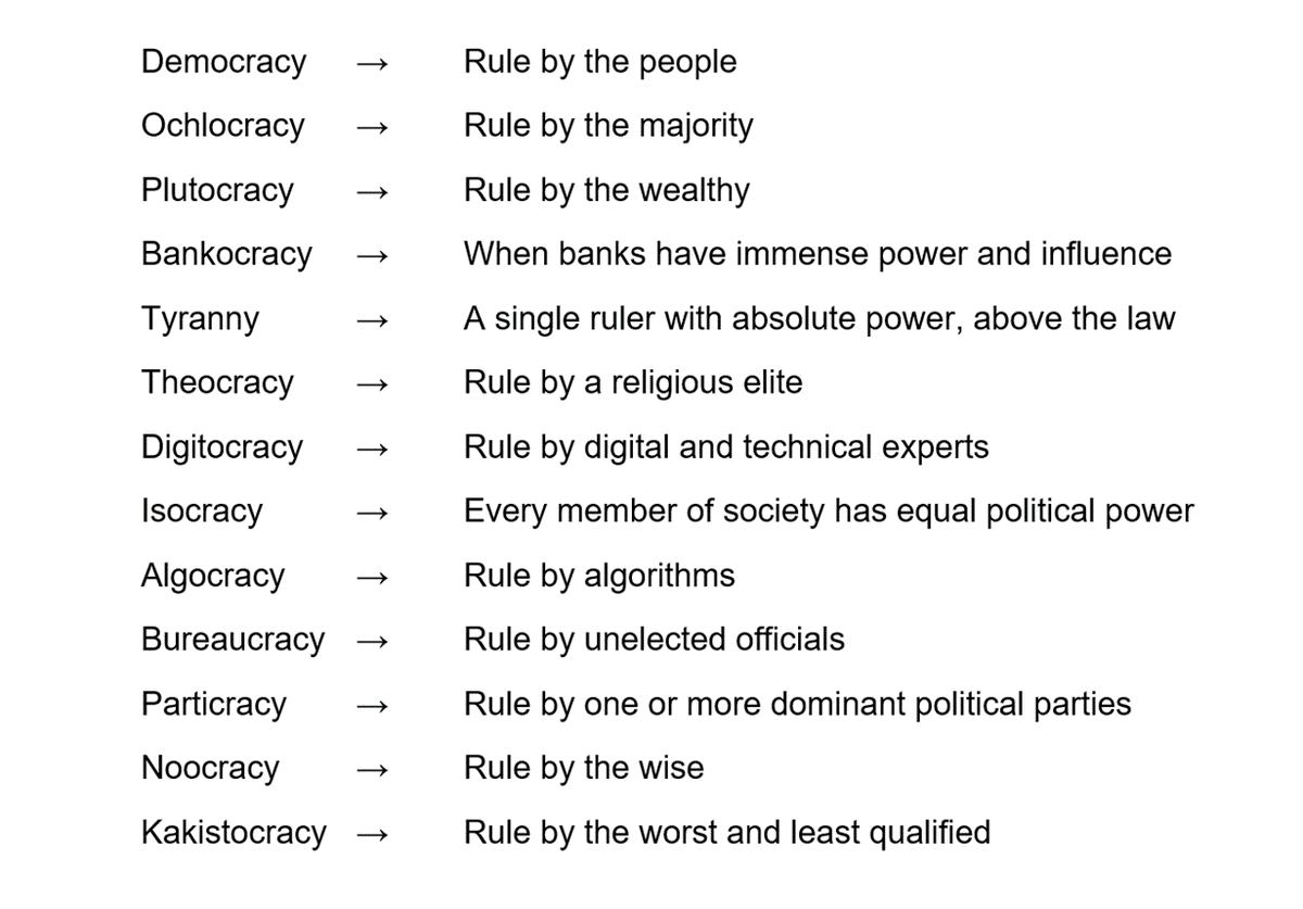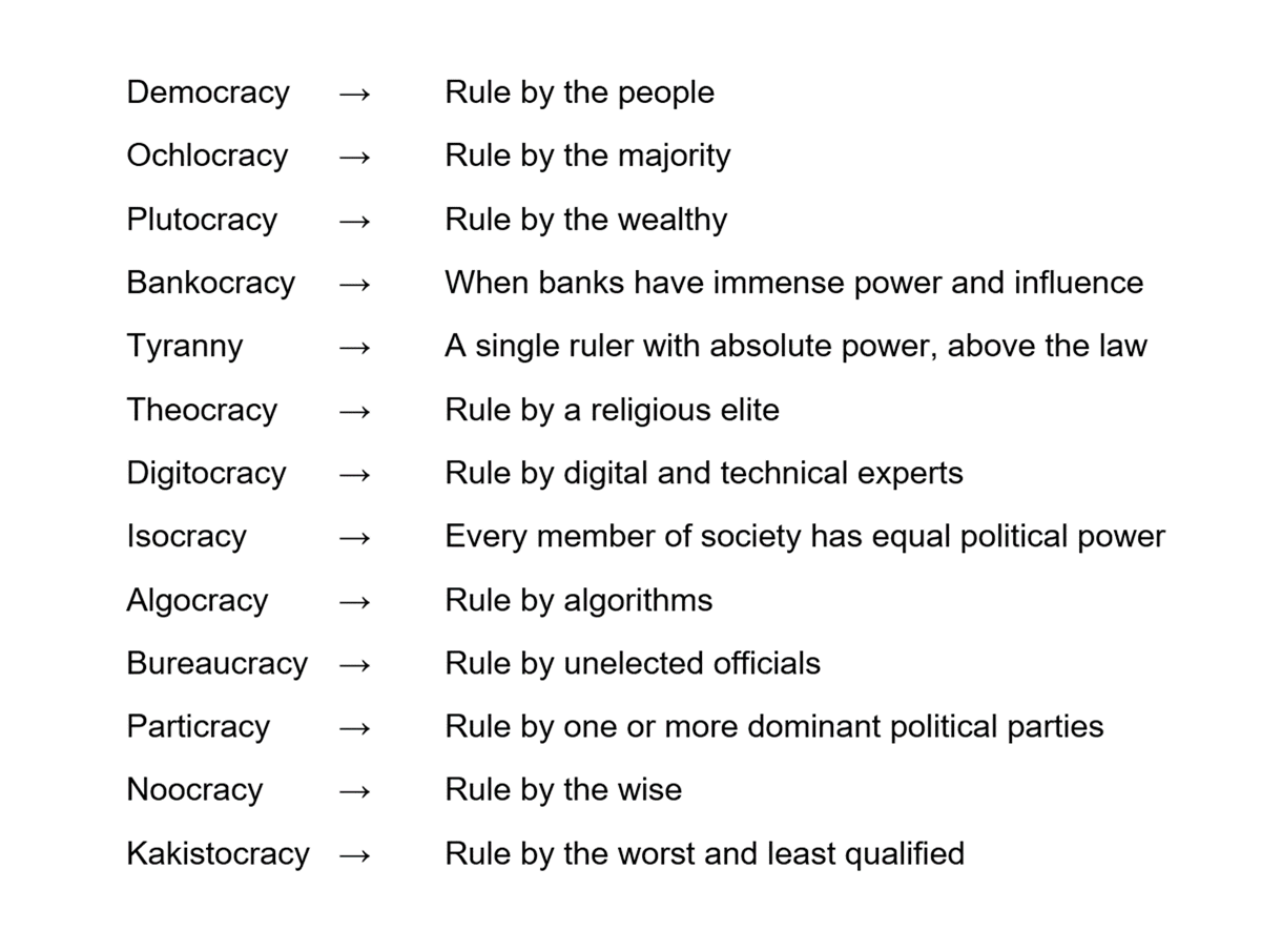 So perhaps the politics of Greece and Rome only go so far. With time more systems of government have emerged or been specified.