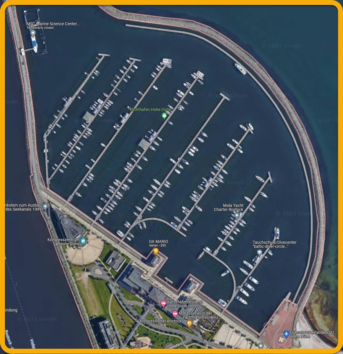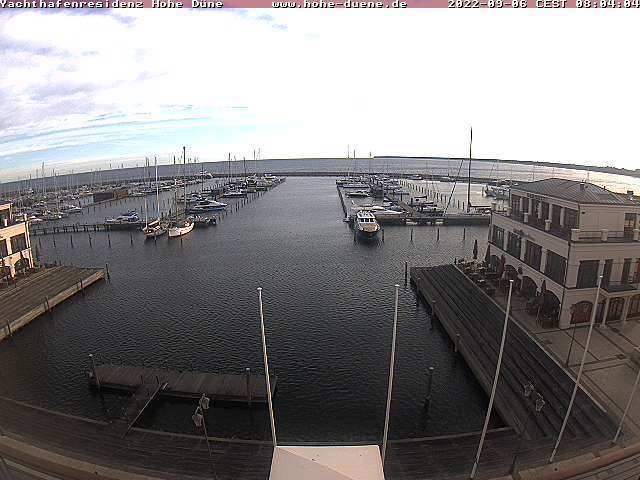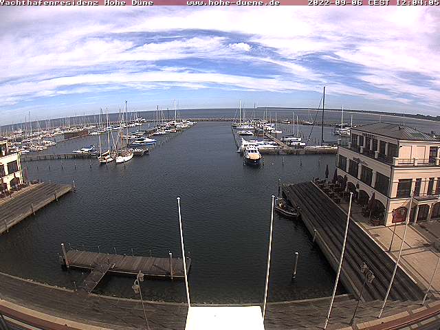There is historical webcam footage with partial coverage of one of these marinas, the Yachthafen Hohe Düne (yellow on my map). Here is webcam footage from Sept 5, and three on Sept 6.