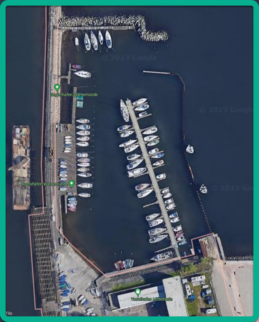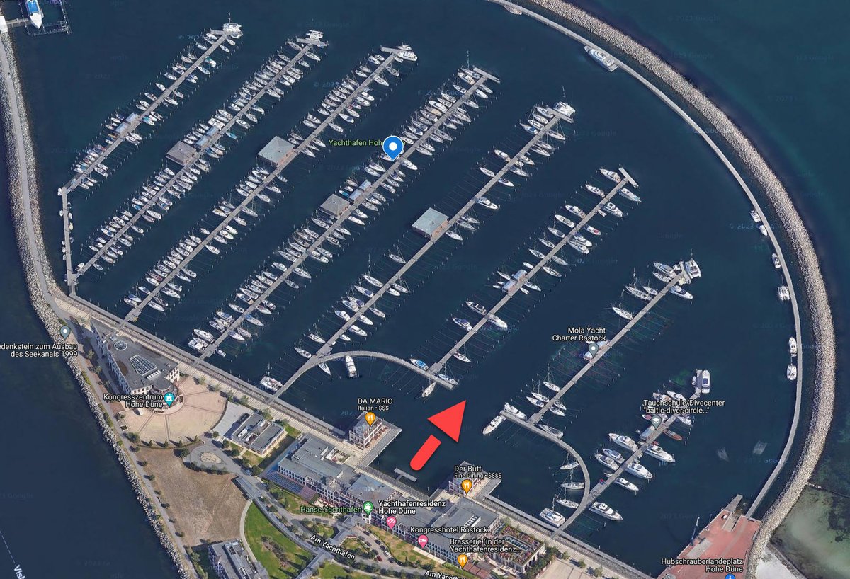 However, there are two docks not visible from this webcam, seen below. The red arrow shows the perspective of the camera at the Rostock port (near the cruise center: google.com/maps/place/Ros…