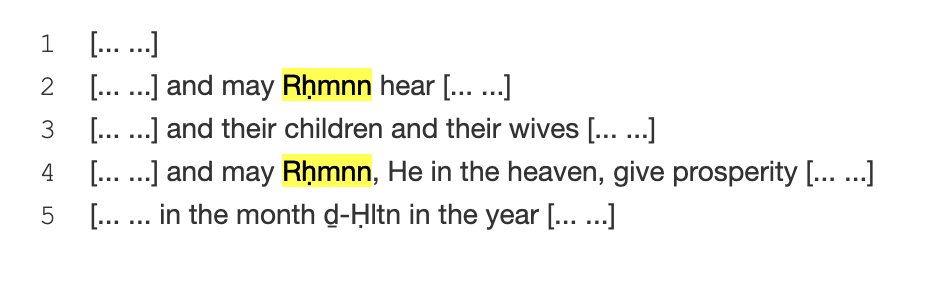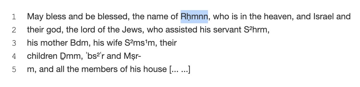 -"might Rḥmnn grant to them prosperity. They entrusted their house, themselves, their sons to the protection of Rḥmnn, the Master of heaven." dasi.cnr.it/index.php?id=3…