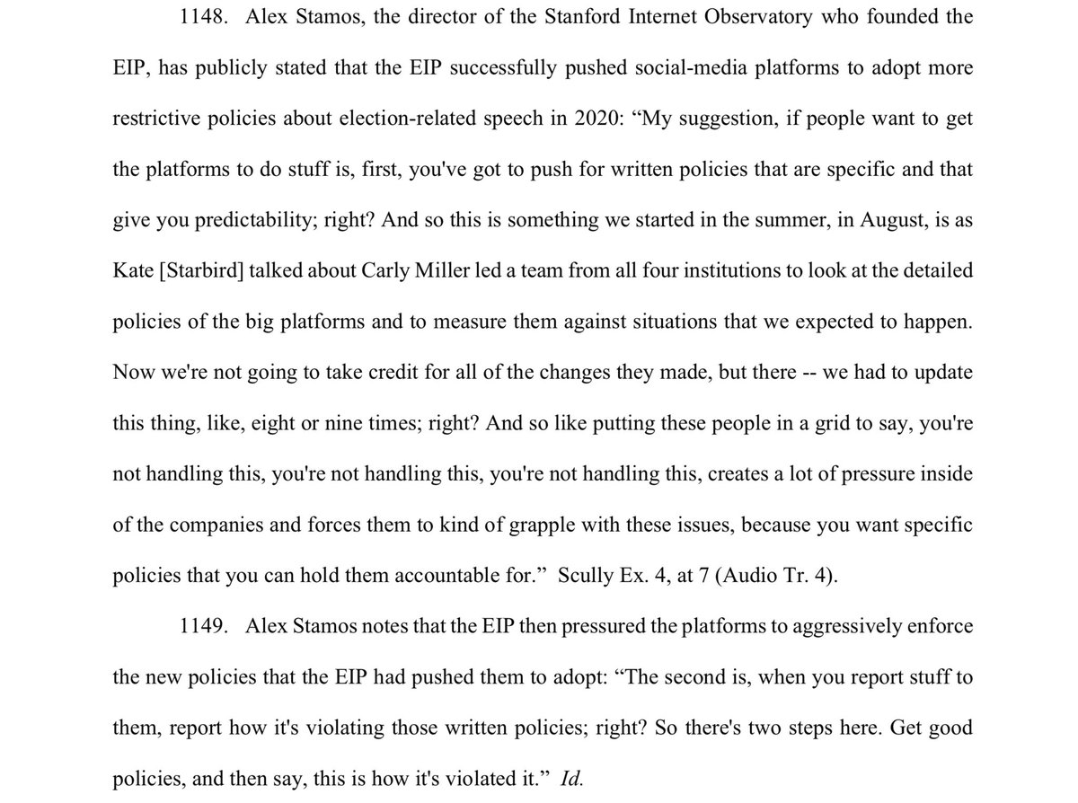 “The EIP admits that it focuses on speech from the “political right” because it believes that the right spreads misinformation: “Influential accounts on the political right ... were responsible for the most widely spread of false or misleading information in our dataset. Right-… twitter.com/i/web/status/1…